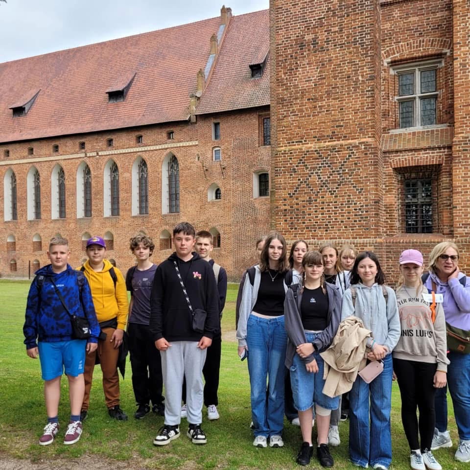 W piątek, 30.05.2025 r. pojechaliśmy pociągiem ze Szczytna na wycieczkę do Malborka, aby zwiedzić największy zamek gotycki na świecie, najpotężniejszą twierdzę średniowiecznej Europy, stolicę państwa krzyżackiego. Przeszliśmy trasą historyczną. Zwiedziliśmy z przewodnikiem część Przedzamcza, dziedziniec Zamku Średniego i Wysokiego, fosy, międzymurze, kaplicę, kuchnię , kapitularz, refektarz, skarbiec. Zobaczyliśmy zamkową toaletę. Chodziliśmy po zamku, w którym mieszkali krzyżaccy rycerze i którym rządził wielki mistrz. Obejrzeliśmy kilka wystaw – z dawną bronią, bursztynem , wyrobami z porcelany. Z dużą przyjemnością słuchaliśmy niezwykłych historii i ciekawostek opowiadanych przez panią przewodnik. Oczywiście trzeba było kupić związane z zamkiem pamiątki. Przeszliśmy też bulwarem nad Nogatem. Późnym wieczorem zadowoleni wróciliśmy do domu.